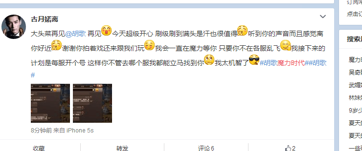 在线下,微博和贴吧中,也吸引了一大批玩家留言,还有热心玩家,把胡歌的语音录制下来,分享给无法进入iOS五区的玩家,可见大家对胡歌有多爱。